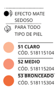 Contiene pigmentos microencapsulados para conseguir que el color se mimetice con la piel, “efecto clon”, sin estar en contacto con la misma.